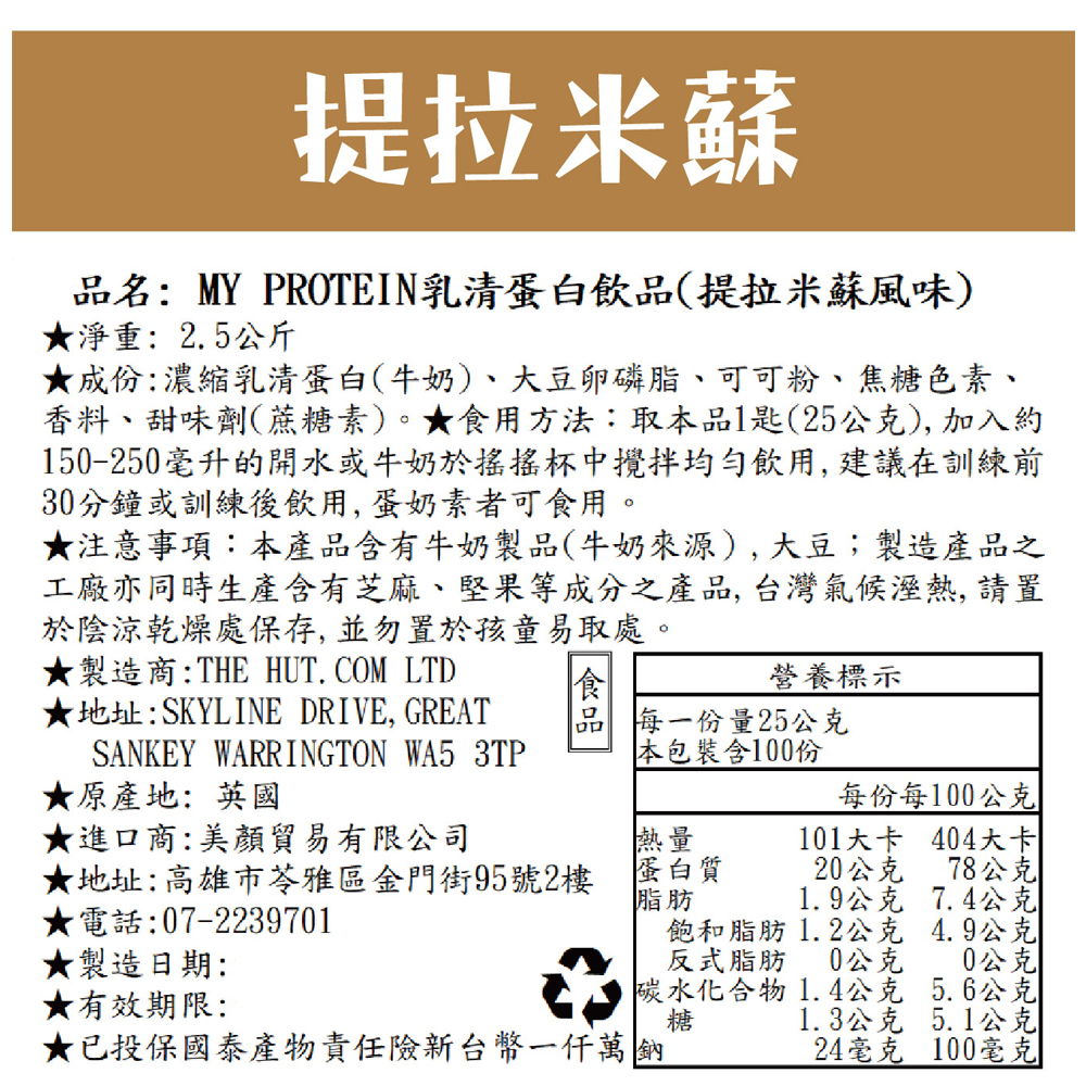 (售完)英國 MYPROTEIN 濃縮乳清蛋白-提拉米蘇(2.5KG/包)