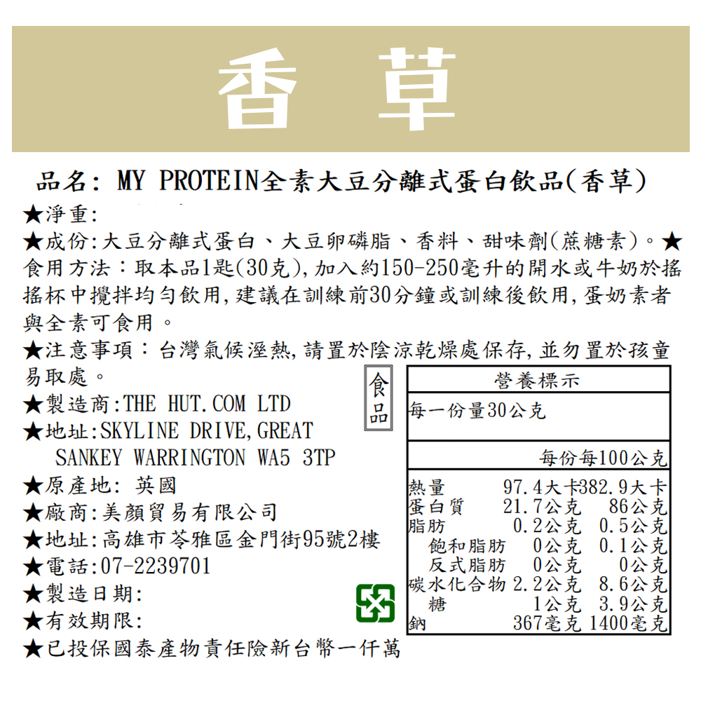 大豆分離蛋白粉由 100% 非轉基因脫脂大豆製成,去除大豆大部分脂肪和碳水化合物。所得產物含超過 90% 蛋白質及最少脂肪與碳水化合物含量,並且完全不含乳糖。大豆分離蛋白是一種全新氨基酸模式,每 100 克含有 6.6 克亮氨酸。