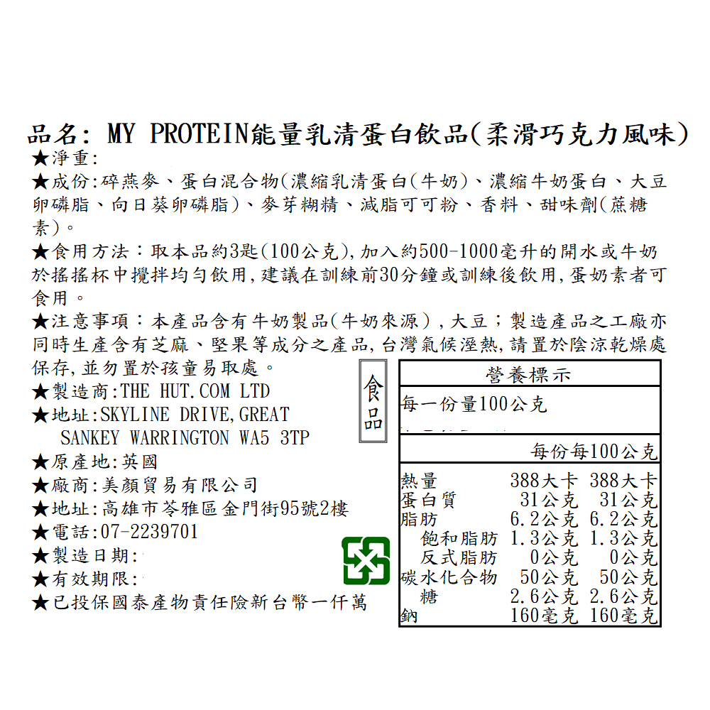 (售完)英國 MYPROTEIN 官方代理經銷 純素植物蛋白 - 巧克力(純素) (2.5KG/包)